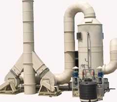 玻璃鋼洗滌塔是硫酸生產線的主要設備,該塔的主要作用是:由塔底進塔的帶有礦塵、砷、硒、氟、二氧化硫等雜質和二氧化碳氣體,經填料層,由塔頂排出。而稀硫酸通過塔頂的噴嘴噴淋,使之填料層中氣液充分接觸,除去雜質,達到凈化氣體的作用。